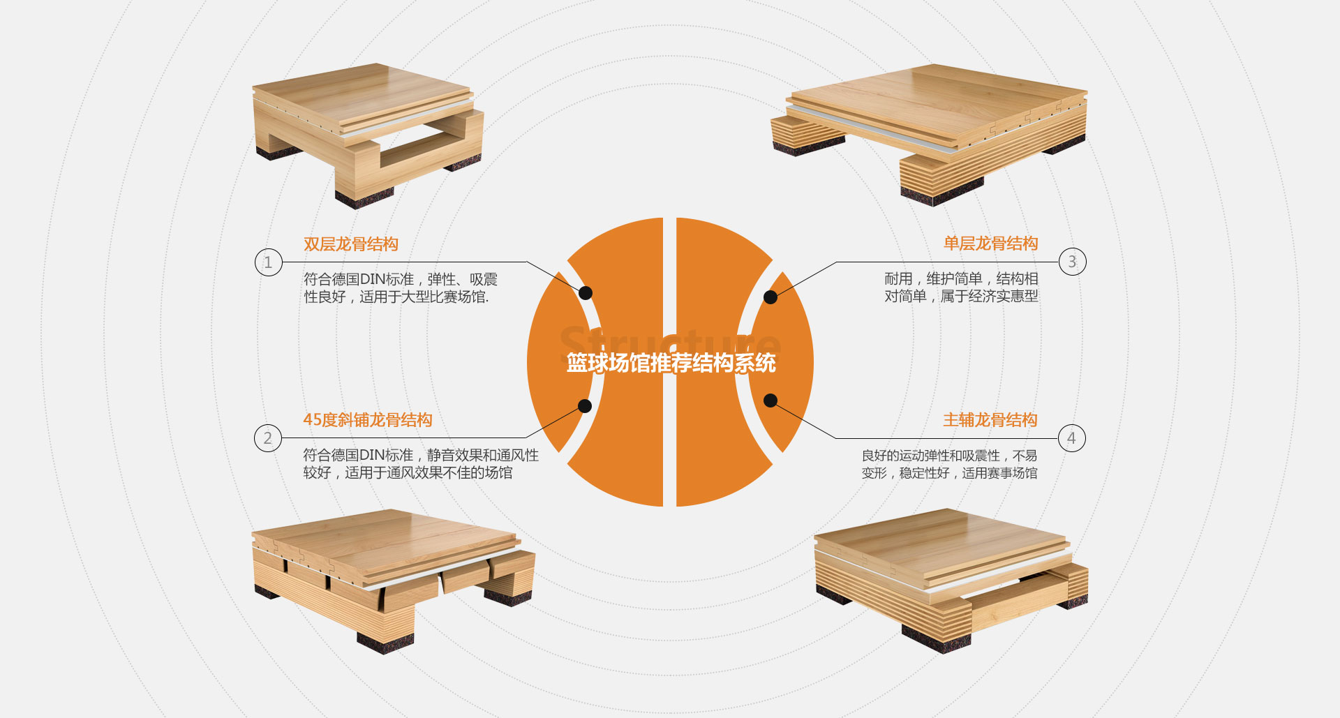 当然,双层龙骨构建起来更复杂一些,价位也比单层龙骨的高许多。运动木地板安装前会根据场地级别要求,根据体育运动木地板色差进行分级。将色差小,视觉效果佳的运动木地板挑选出来作为专业体育地板面层,而色差明显的则作为其它运动地板的面层。按照国家标准生产体育运动木地板产品。首先,我们要检查破裂,破损的程度。检查破裂破损程度,是进一步进行维修,修理的主要前提,不然我们在修理时将会无法掌控安全性,对于运动员们来说,也是个不稳定的危险因素,所以,破裂程度一定要明确。好的运动木地板在稳定性和弹性等方面都非常的好,能应用一些比较大型的体育运动比赛的要求。篮球场的地板,木地板和塑胶地板都各有优点,运动塑胶地板,有很好的弹性,在剧烈运动中突然停止运动,就很容易拉伤肌肉。也很容易摔倒,容易给人的身体带来运动损伤。而塑胶运动地板却能很好的解决这些问题,同时它有很很强的承重能力,完全可以达到比赛级运动的要求,即使是篮球、乒乓球、羽毛球这样运动,塑胶运动地板的表面和内部结构都不会遭到破坏。
